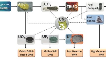 Most advanced or established reactor concepts can be designed as small modular reactors (SMRs). Considering fuels, the four main SMR designs are based on either ceramic oxide pellets, fuel dispersed in a molten salt, metallic uranium alloys or TRISO-coated uranium kernels. Enrichments in the HALEU range (5% – 20%) are beneficial for SMR fuels, because they have of a higher energy density enabling smaller reactor cores and generally allow for higher burnups. Consequently, refuelling cycles can be extended, and nuclear waste can be reduced in volume.