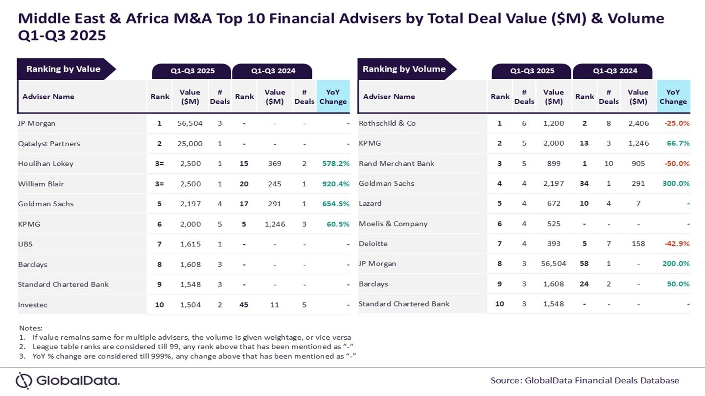 JP Morgan and Rothschild & Co have emerged as the top mergers and acquisitions (M&A) financial advisers in the Middle…