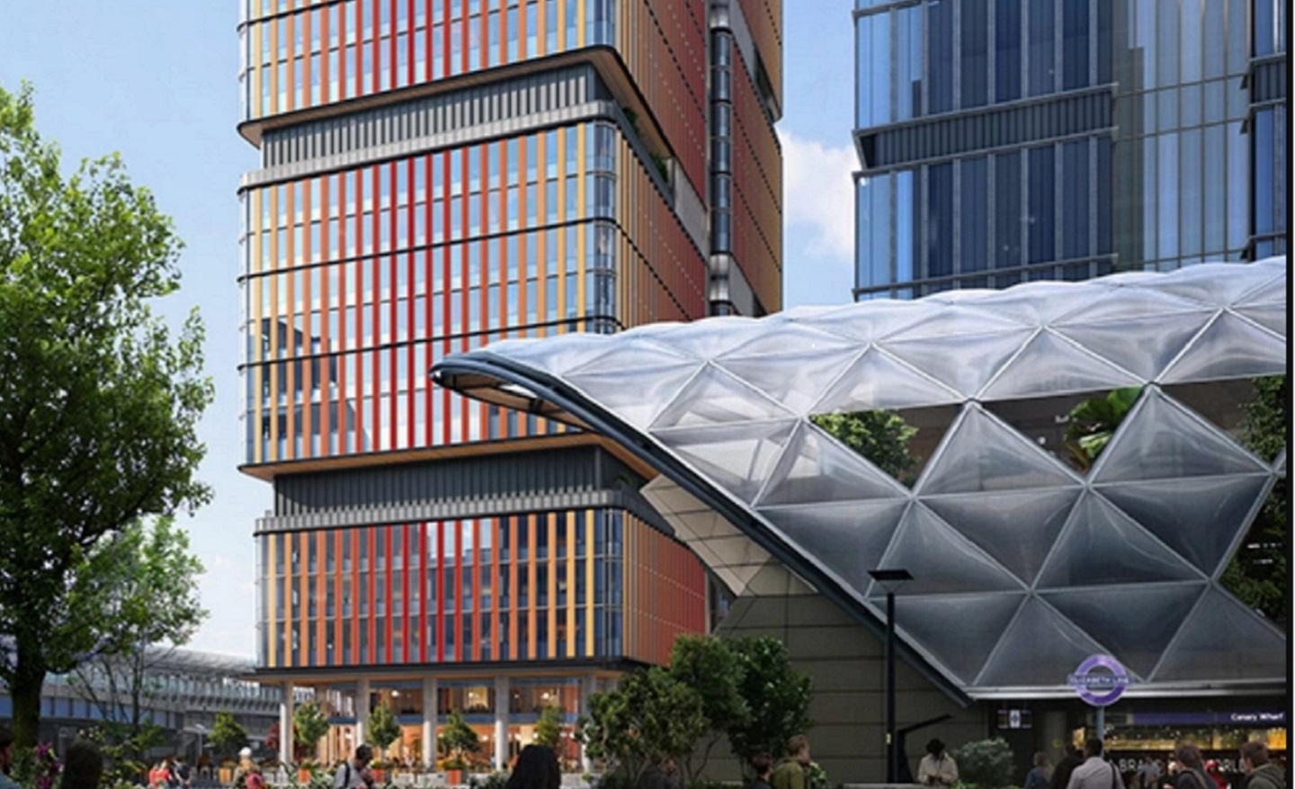 The new 23-storey tower is being built at the North Quay site, next to Crossrail Station and its new Elizabeth Line in the area of Canary Wharf.