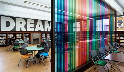 The renovation has created approximately 40,000ft² of new public space in the library. A new 250-seat auditorium has been created out of a former sub-basement space. Other public spaces created in the library include a children’s activity area, teen lounge and a new ‘Creative Experience’ multi-media studio.