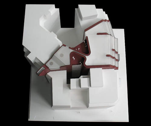 The building stands where an old warehouse which was used as a storage facility was sited, with two historic buildings on either side. While designed to be part of its environment, the building also stands as a landmark when viewed from the